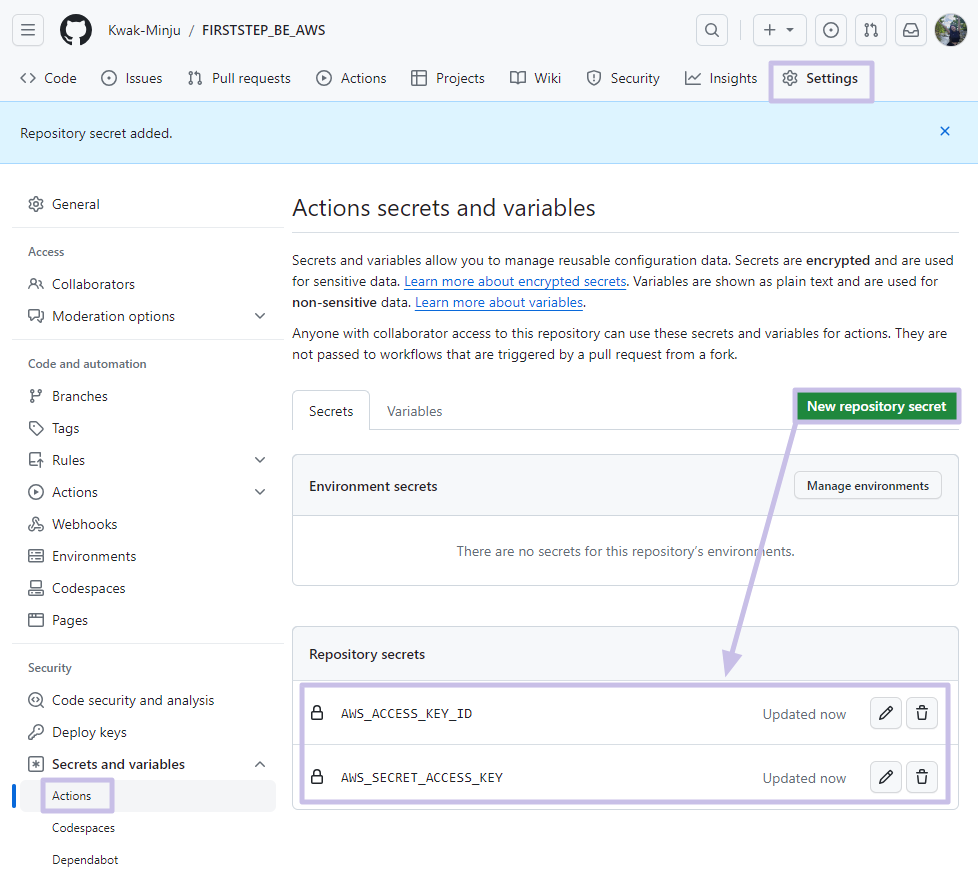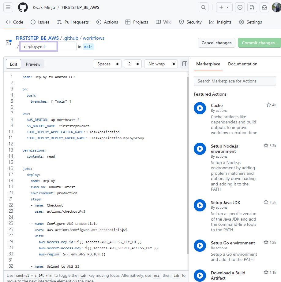 * CodeDeploy 먼저 설명되어있지만 GithubAction부터 해보는 것이 더 편리할 것 같음.