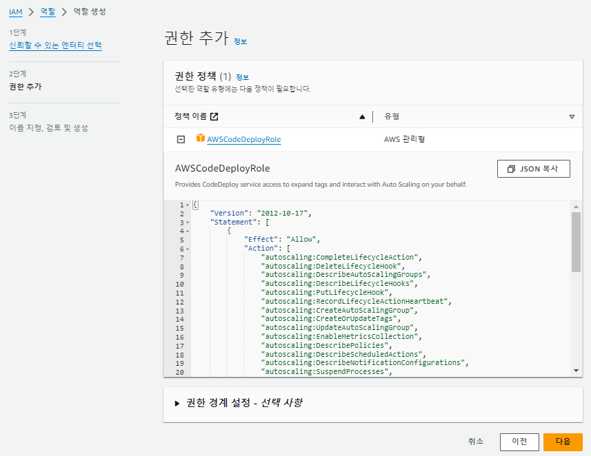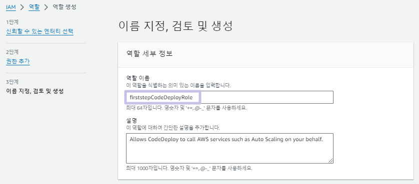 #4 CodeDeploy에서 사용할 역할 생성 - firststepCodeDeployRole