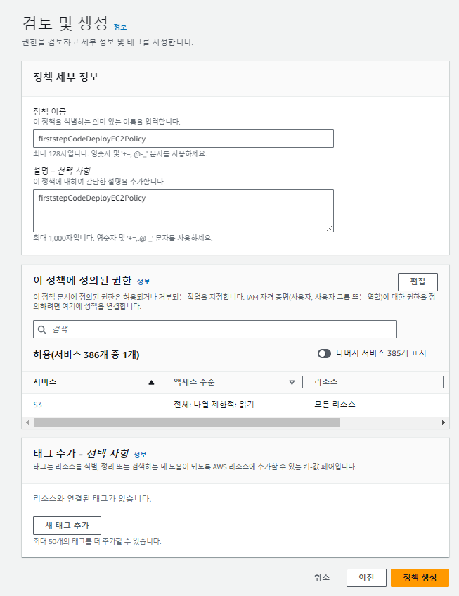 firststepCodeDeployEC2Policy / firststepCodeDeployEC2Role