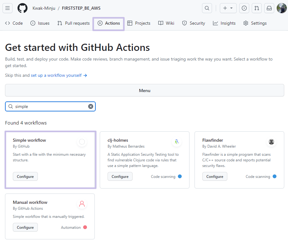 back-flask server GitHub Action을 사용해 workflow 자동화