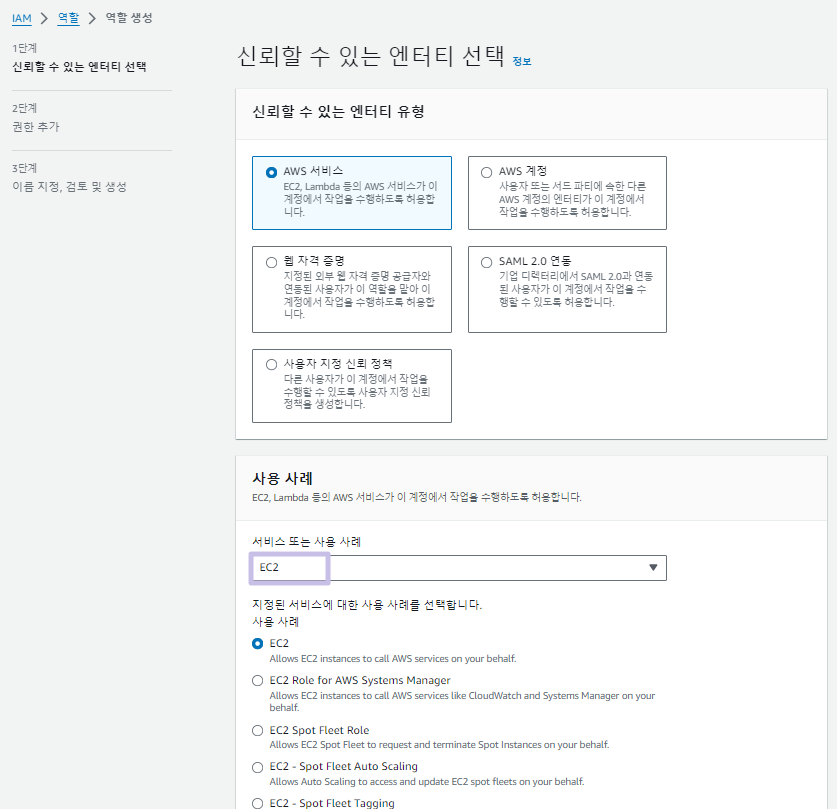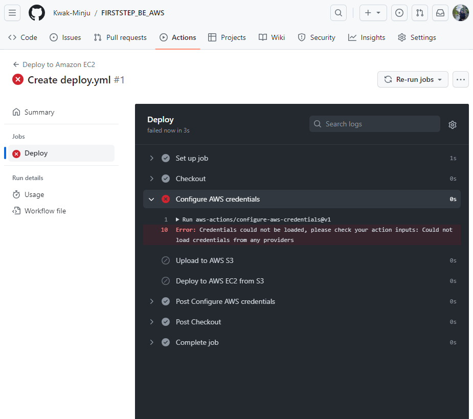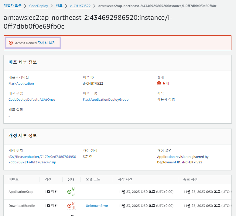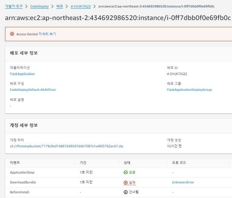 3. 이때 설치된 CodeDeploy에는 해당 역할을 실행 할 수 있는 자격증명이 없기에 위와 같은 에러가 발생 하는 것