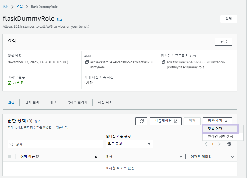#5-1 EC2 인스턴스에 묶여 있는 역할에 S3와 관련한 권한을 추가