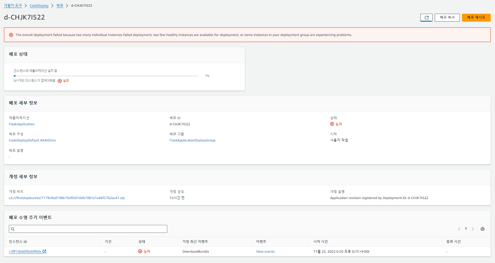The overall deployment failed because too many individual instances failed deployment, too few healthy instances are available for deployment, or some instances in your deployment group are experiencing problems.
